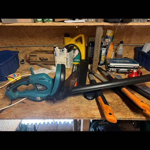 Makita DUH602 hækkeklipper og Makita DUN500W stanghækkeklipper til 18V batterisystem. DUH602 har 600 mm sværd, og DUN500W har 500 mm sværd. Sættet omfatter en Makita 18V 5,0 Ah Li-ion batteripakke samt Makita DC18RC oplader. Velegnet til klipning og trimning af store hække og buske, både i normal arbejdshøjde og i extra højde og dybde ved hjælp af stanghækkeklipperen. Kvittering haves købt juli mdr. 2025 begge maskiner brugt 1 gang. (Nypris Kr. 6.573,85 )