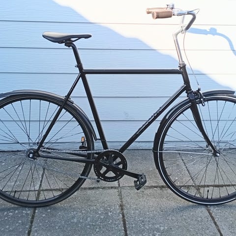 X-Zite Inc. herre bycykel i størrelse 59 med 28"/700c hjul. Cyklen har klassisk herrestel og er egnet til daglig kørsel i byen. Udstyret med bagagebærer og skærme som på billederne. Velegnet til en mandlig rytter, der ønsker en enkel og funktionel cykel til transport og pendling. Den har 7 perfektkørende gear og både fodbremser og håndbremser.
