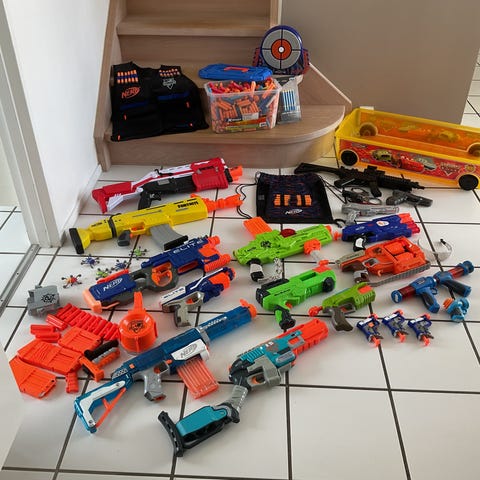 Skal dit barn være den med den helt grove NERF gun-samling? Den alle de andre vil hjem til for den store NERF gun-battle? Så køb hele samlingen vist på billedet.