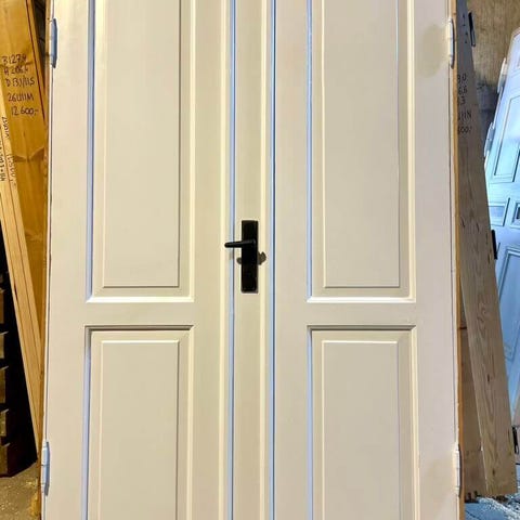 Døren er 170 cm bred (2 x 85 cm), 198,50 cm høj og dørbladene er 3,50 cm dybe.