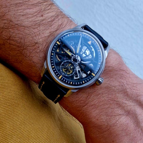 Størrelsen på 39 mm og 44 mm lug-to-lug gør, at uret bærer rigtig godt på de fleste håndled, og Miyota 9015-værket giver samtidig en relativt slank profil for et ur med 200 m vandtæthed.
