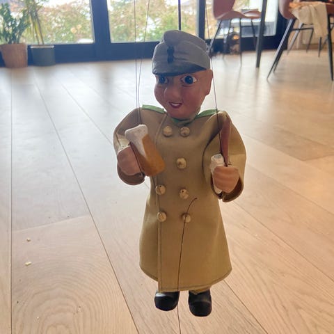 Charmerende vintage sømandsfigur med rokke hoved. Figuren er produceret i Tyskland i 50-60’erne og har det originale mærke "Made in West Germany” om halsen rigtig flot stand H24cm mp 500kr afhentes i 8570 Trustrup eller sendes for 45kr
