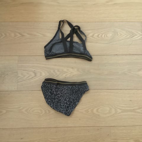 Femilet tankini med top og trusser flerfarvet stribet dame str. 38