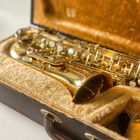 Fin sopransax fra 92, står med originale puder, er netop justeret, 3 puder er rettet til, så den nu fungerer tæt og velspillende. Sælges med to mundstykker: Selmer S80 D og Yanagisawa 5, begge i fin stand. Prisen er meget fordelagtig.