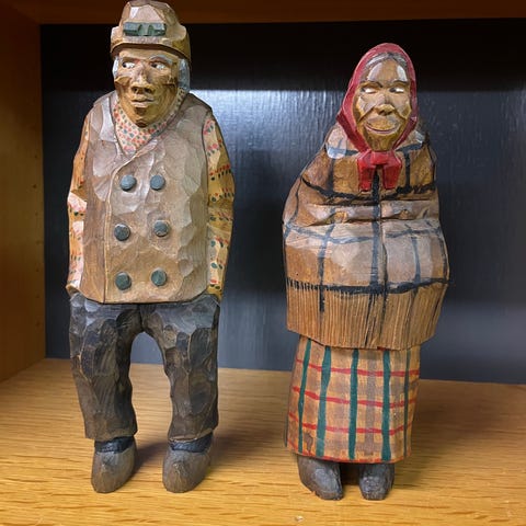Træfigur udformet som viking med hjelm, skæg, skjold og spyd. Figuren er fremstillet i lyst træ med drejede detaljer og små metalnitter på hjelmen. Den har bevægelige ben og runde træfødder. Egnet som dekoration i hjemmet, fx på hylde, reol eller bord. Velegnet til samlere af træfigurer og nordisk inspireret brugskunst. 2000 eller bud