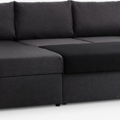 Praktisk og komfortabel hjørnesofa med sovefunktion og opbevaringsrum. Sofaen kan nemt laves om til en seng, og chaiselongen har stort opbevaringsrum til fx dyner og puder.