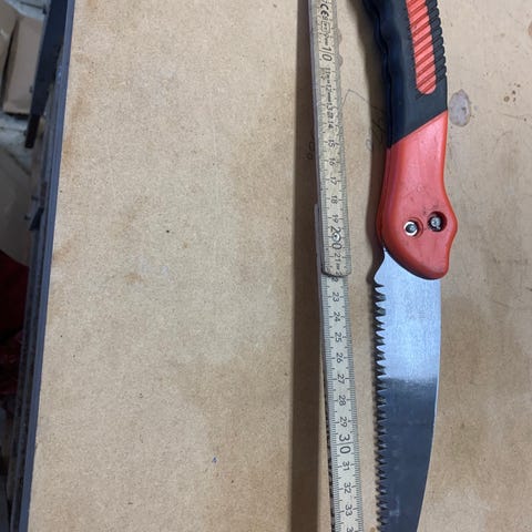 En ekstrem god folde træksav, lige til at have med sig på tur. Klingen er rigtig skarp. Den er rigtig god til grene og mindre træer.