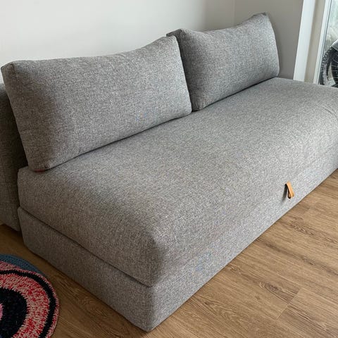 Sofaen foldes hurtigt ud til en seng på 160 cm, så der faktisk er ordentlig plads at sove på – ikke bare en nødløsning til gæster.