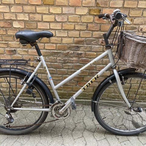 Cykel til kvinder i størrelse XS med 24" hjul. Cyklen har lav indstigning, fast bagagebærer, kædeskærm, støtteben og skærme for og bag. Velegnet som hverdags- og bycykel til kortere og mellem-lange ture.