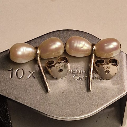 Fine små blomsterørestikker i 925 sølv , stemplet 925. Diameter på blomsten er ca 7 mm.