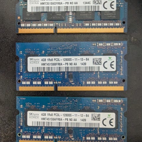 SK Hynix 4GB PC3-12800S DDR3 SO-DIMM RAM til bærbar computer. Kapacitet 4 GB pr. modul, type DDR3, hastighed PC3-12800S. Fysisk format SO-DIMM, egnet til bærbare computere og andre enheder, der bruger denne RAM-type.