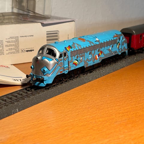 DSB MH 346 modeltog lokomotiv i sort og rød. Lokomotivet er udført som en mindre rangerlokomotiv-type med detaljeret førerhus og påskrifter på siderne. Egnet til brug i modeljernbaneanlæg eller som samlerobjekt. Nærmere oplysninger om skala, producent og driftsspænding fremgår ikke af oplysningerne og bør kontrolleres af køber.