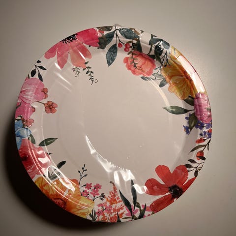 Sæt med flotte engangstallerkener med blomstermønster. Alle er nye og uåbnede.