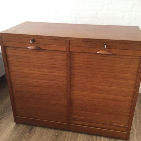 Stort vintage jalousiskab i teak / eg