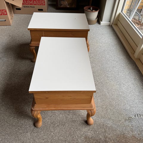 Lille fint sengebord/ sidebord. Det er i en fin stand med et lille afslag i siden og et svagt ringmærke på toppen. Har ikke prøvet af fjerne det.