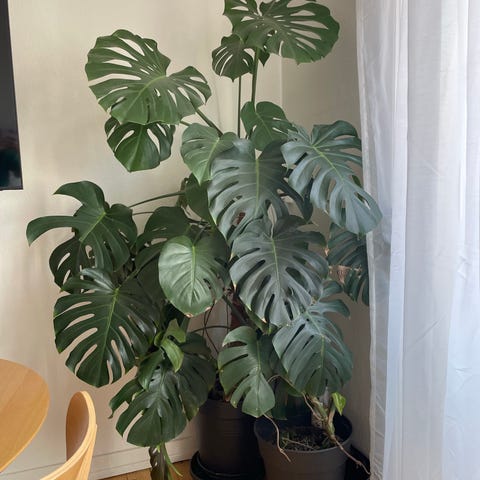 Super fin monstera med mange blade, den er 4 år gammel. Med potte og underskål.