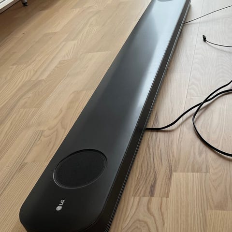 Velspillende soundbar fra LG med trådløst modul til baghøjtalere. Originale baghøjtalere medfølger. Trådløs subwoofer.