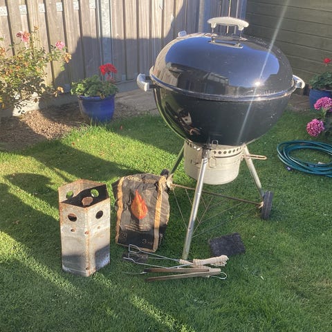 Weber kuglegrill i sort emaljeret stål. Grillen står på tre ben med hjul på de to af benene for nem flytning. Låget har ventilationsspjæld og håndtag i varmebestandigt materiale. Grillrist i metal med cirkulær form. Medfølgende grillovertræk fra Weber, som beskytter grillen mod vejr og vind. Velegnet til kulgrillning på terrasse eller i have.