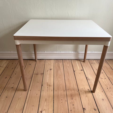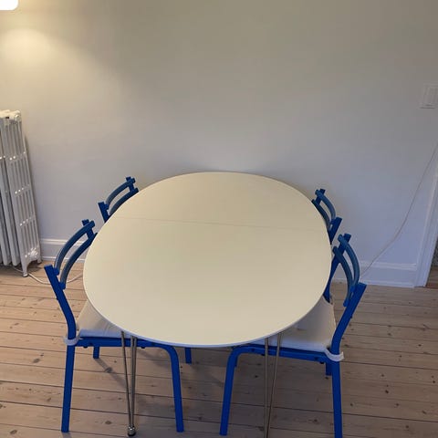 Hvid spisebord med udtræk og 2 stk. tillægsplader 50 cm
