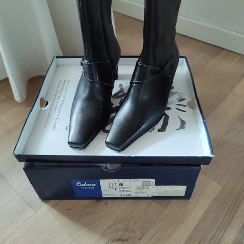 Hælhøjde 5 cm. Skaftehøjde ca 36. Læder uden ridser.