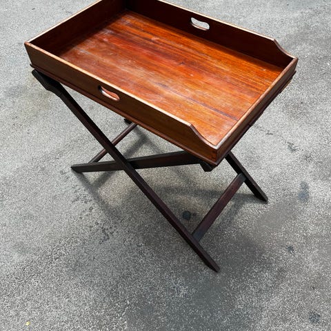 Dette elegante bakkebord er designet af Hvidt og Mølgaard og fremstillet af Søborg Møbelfabrik i 1960'erne. Bordet er lavet i smukt teaktræ, hvilket giver det et tidløst og stilfuldt udtryk, der passer perfekt ind i både moderne og klassiske indretninger. Det praktiske design med hjul gør det nemt at flytte rundt og anvende i forskellige rum. Bordet har en bredde på 88 cm, en dybde på 48 cm og en højde på 68 cm, hvilket giver det den ideelle størrelse til både funktion og æstetik. Et perfekt møbel til at tilføje både charme og funktionalitet til dit hjem.