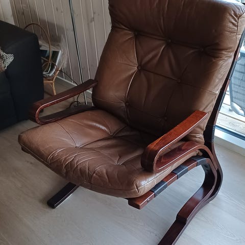 Flot sæt lænestole designet af Einar Hove i klassisk norsk 70’er design.