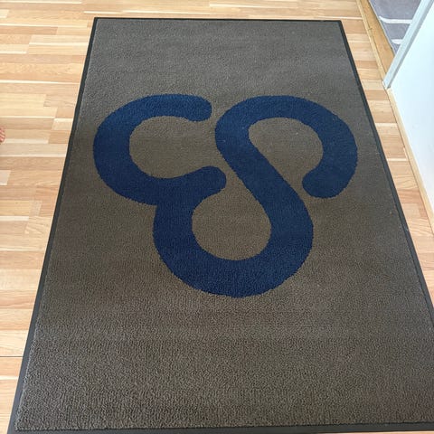 IKEA tæppe med blå mønsterdetalje