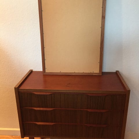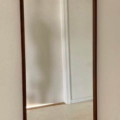 Stort og smukt spejl i teak. God stand og god størrelse: 51x83.