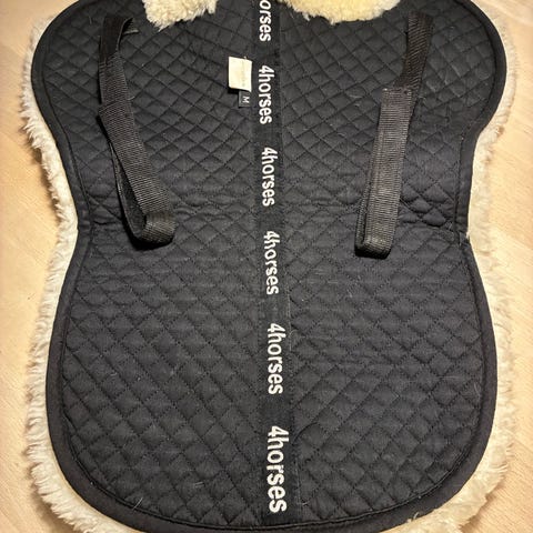 Glen Gordon lammeskinds pad til sadel i farverne sort og natur. Padden er udformet til at ligge mellem hest og sadel for at give ekstra polstring og trykfordeling. Oversiden er i quiltet materiale, mens undersiden er foret med blødt lammeskind langs ryg og kanter. Velegnet til brug under almindelig ridesadel for øget komfort til hesten.