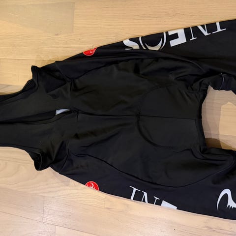 Astral cykelsæt bestående af jakke og selebukser til herre i størrelse XL. Sættet er sort og egnet til cykling i køligere vejr. Jakken har lynlås foran og reflekterende detaljer på ærmet. Selébukserne har lange ben og også reflekterende detaljer ved benene. Materialet fremstår som et teknisk stof, der er velegnet til sport og udendørs aktivitet. Sættet kan bruges til landevejscykling, pendling eller anden cykeltræning.