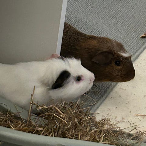Vores 2 dejlige marsvin hanner Bille og Toffie søger desværre nyt hjem, det er de sødeste 2 skønne marsvin, som er brødre og har gået sammen altid og er bare gode sammen. De er fra midt juni 2025 så ca 9 måneder.
