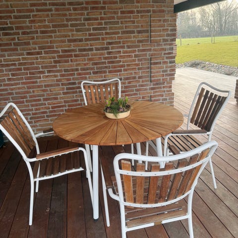 OUTRIUM FARO Ø138 cm havebord + 4 stole i natur