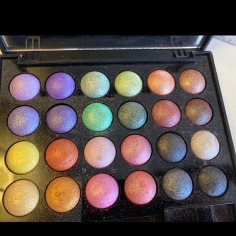 Maybelline The Burgundy Bar øjenskyggepalette med 12 pudderøjenskygger i burgundy- og nudeinspirerede nuancer. Paletten indeholder både lyse, mellem og mørke farver i matte og shimmer-finish, velegnet til forskellige øjenmakeup-looks. Egnet til brug alene eller kombineret på øjenlåget og langs vippekanten. UÅBNET