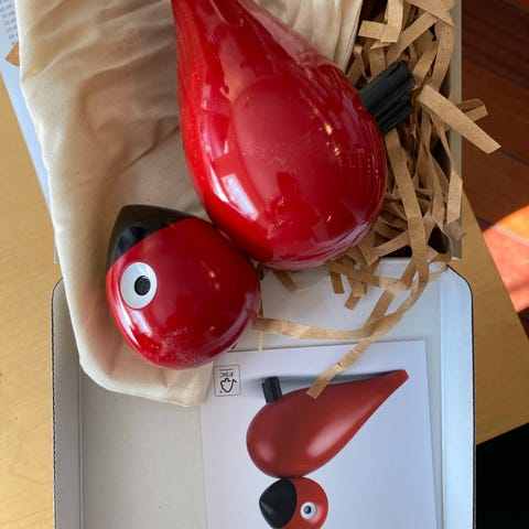 Kay Bojesen sangfuglen LIV som er givet til bloddonorer. Kassen har aldrig været åbnet.