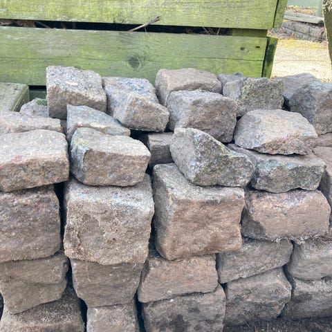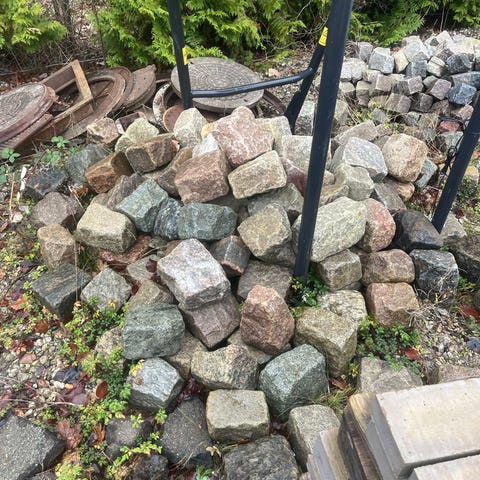Lille bunke med granit brosten. 8 kr pr stk.