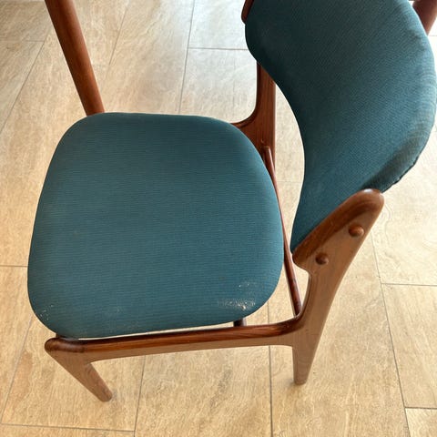 Stolene er i teak og polstringen er i fin stand. Sælges da jeg har et par tilovers.