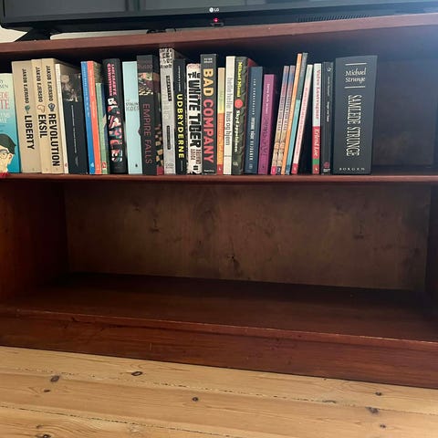 Måler 116 i højden, 27 i dybden og 84 bredden. Er malet med kalkmaling. Mangler lidt opfriskning