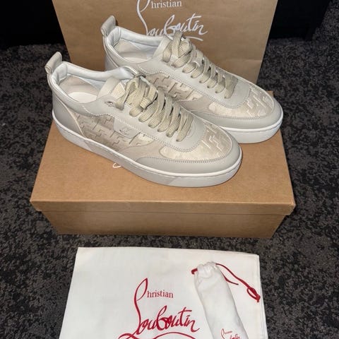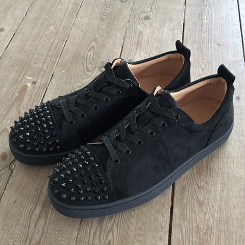 Christian Louboutin sneakers i str. 42. Højskaftet model i sort med nitter på sider og snørelukning foran. Klassisk rød sål med Christian Louboutin-logo. Velegnet som hverdagssko eller til mere pyntede outfits.