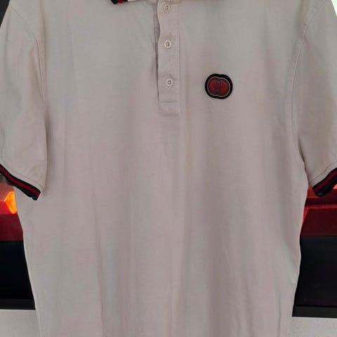Gucci polo t-shirt til herre i størrelse XXL. Passer XL Trøjen er navy. Klassisk polokrave med knaplukning foran. Velegnet til hverdagsbrug eller mere afslappede anledninger.