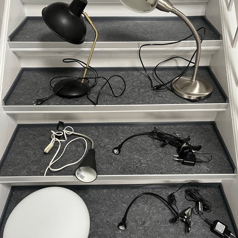 2 ekstra skærme til hver i hvid og blå. Afbryder på ledning.
