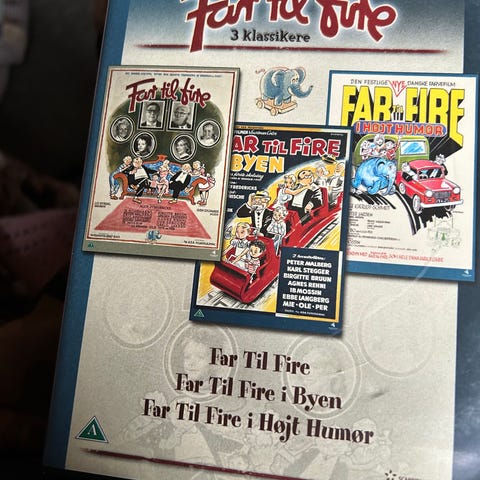 Far til fire dvd samling. Pakken indeholder flere forskellige Far til fire‑film, bl.a. klassiske titler som "Far til fire på landet", "Far til fire i stor stil", "Far til fire i højt humør", "Far til fire på Bornholm", "Far til fire i sneen" samt andre film fra serien. Alle film er i dvd‑format og egner sig til familier, der ønsker danske familiefilm samlet ét sted.