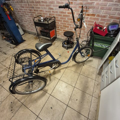 Den kører godt - har dog stået ude - så der er noget overfladisk rust + sadel og håndtag mørnet af vind og vejr