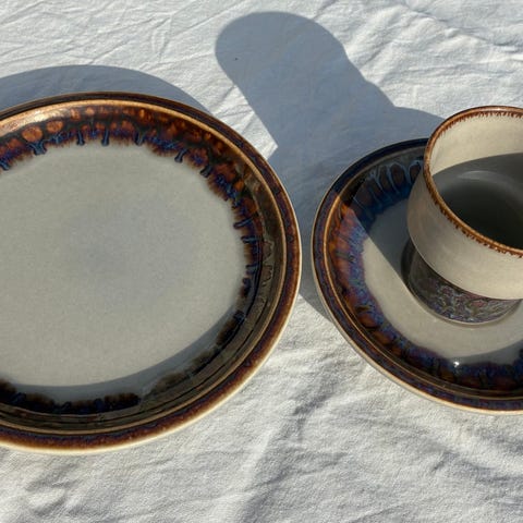 Stentøjsstel fra Bing og Grøndahl model Mexico, som har så fed en glasur, hvor ingen er helt ens, hvilket er forsøgt illustreret med billederne - og mere haves end det, der ses på billederne.