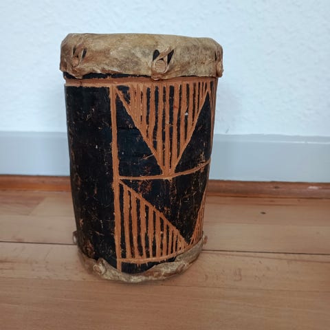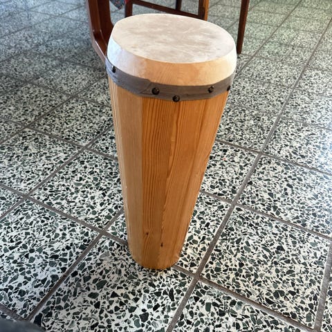 Træ tromme / Tromme H: 52 cm Ø øverst: 22 cm, den er bredere på midten.