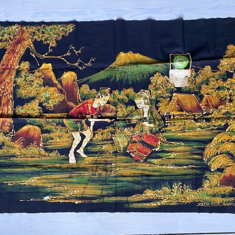 Batik på bomuld fra Indonesien Flot motiv og Håndværk Vægophæng Ny stand