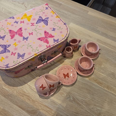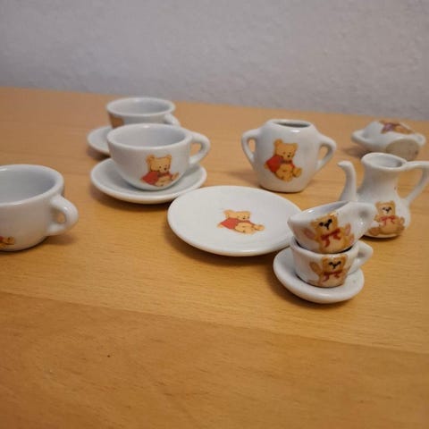 et kinesisk dukke stel tekande fad 3 kopper samovar og varmeplade alt i fejl fri stand ældre