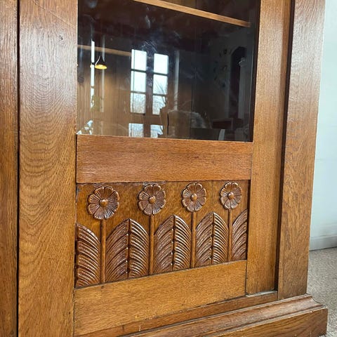 Skænk træ med udskæringer og glaslåger