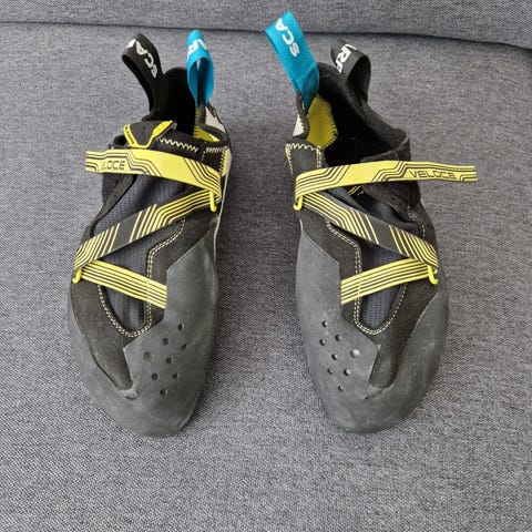Jeg sælger mine Scarpa Vapor V klatresko i str. 44,5 da jeg simpelthen aldrig har fået dem brugt. Jeg købte dem for nogle år siden, men jeg har kun klatret kort i dem 5-10 gange, så standen er stort set helt som ny.