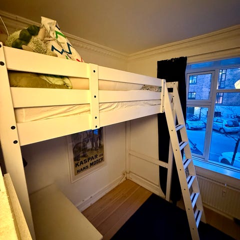 IKEA VITVAL højseng 90x200 cm med stige i siden.