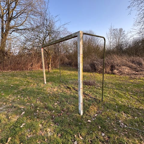 Fodboldmål 2 stk - enkelte knækkede plastikrør imellem